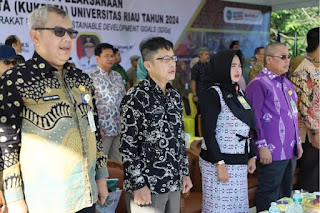Kegiatan yang dipusatkan di lapangan Open Space Kampus Bina Widya Unri ini turut dihadiri Pj. Gubernur Riau dan seluruh Kepala Daerah se Prov. Riau juga Rektor serta seluruh civitas akademika dengan diikuti mahasiswa dan mahasiswi yang akan mengikuti KKN di 12 Kabupaten / Kota se Prov. Riau.