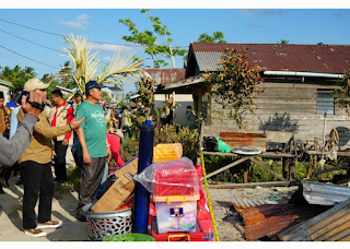 Adapun bantuan yang diserahkan berupa uang tunai dari BAZNas senilai Rp. 2.500.000 untuk 4 kepala keluarga (KK), peralatan harian dan sembako dari Dinas Sosial dan BPBD Inhil.