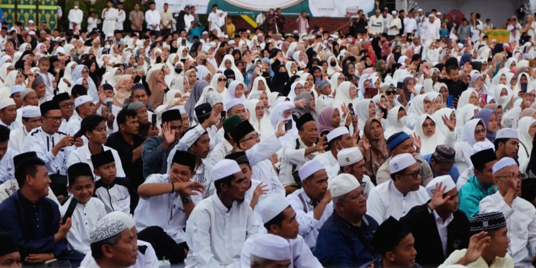 Acara puncak Istighosah event wisata religi gema Muharram ini dipadati ribuan masyarakat Indragiri Hilir yang hadir sejak ba'da Ashar untuk menyaksikan tabligh akbar yang disampaikan oleh KH. Ahmad Mubarak.