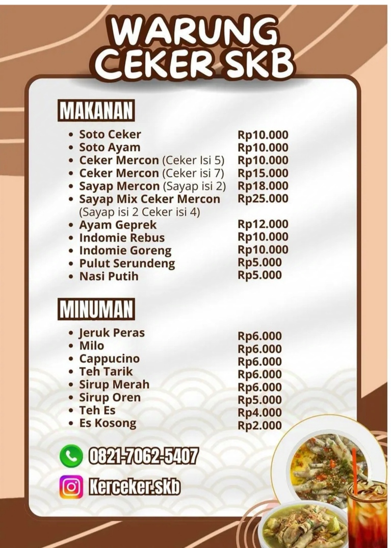 Berikut harga menu di Warung Ceker SKB Tembilahan: