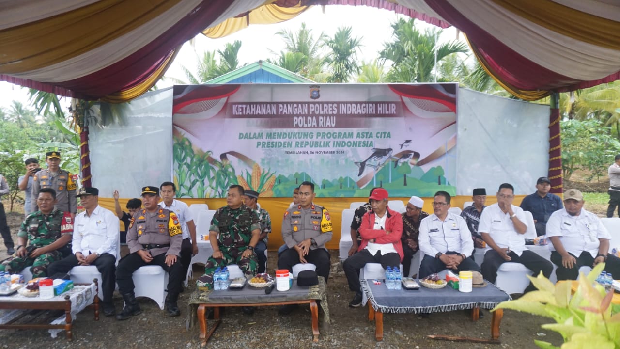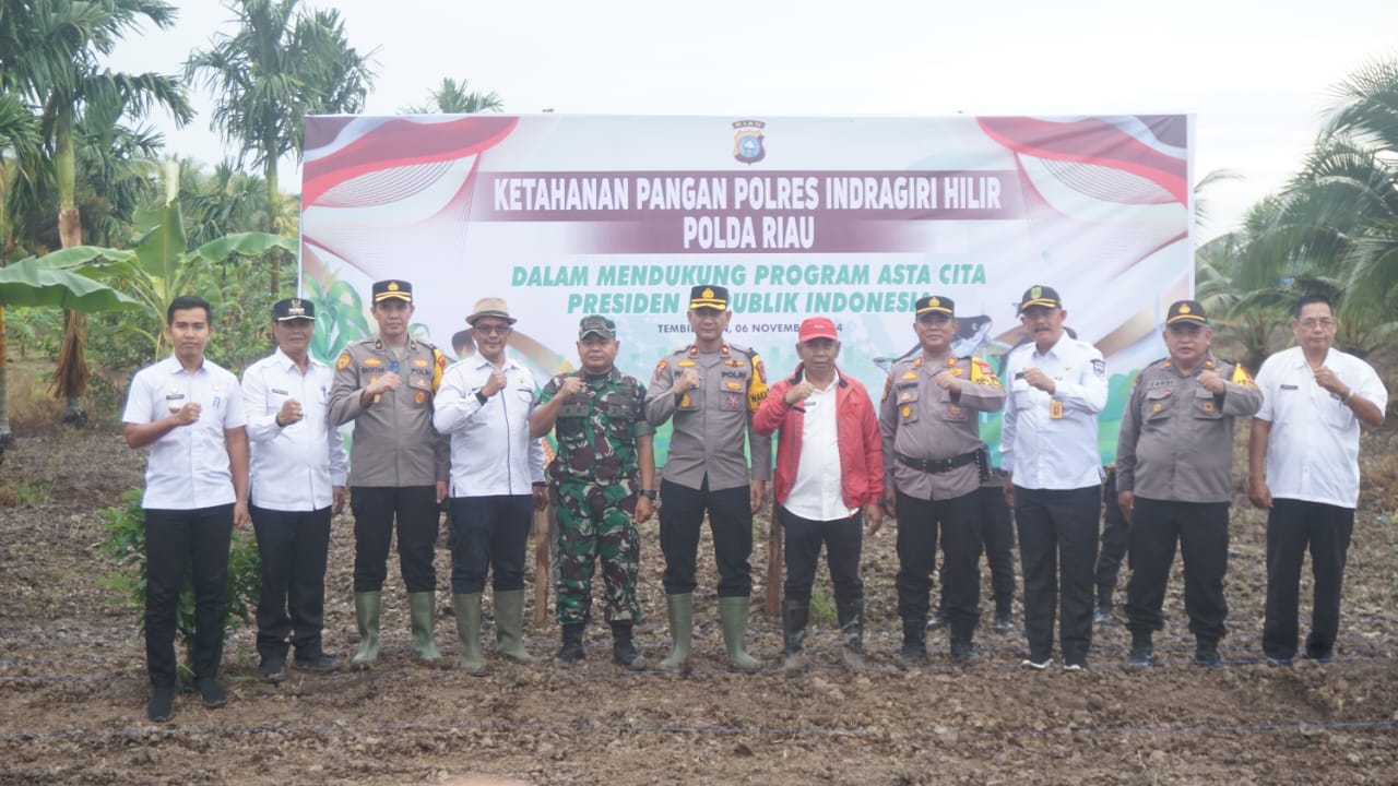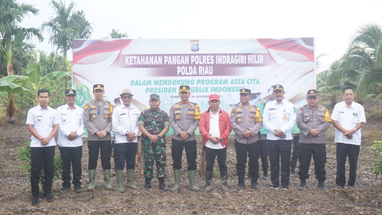 SIBERONE.COM – Penjabat Bupati Indragiri Hilir (Inhil), yang diwakili oleh Asisten Bidang Perekonomian dan Pembangunan Sekretariat Daerah (Setda) Inhil, Junaidy Ismail, bersama Forum Koordinasi Pimpinan Daerah (Forkopimda) Inhil, melaksanakan kegiatan Kick Off Ketahanan Pangan di Pangkalan 7, Kecamatan Tempuling, pada Rabu (6/11). Kegiatan ini merupakan bagian dari program yang diinisiasi oleh Polda Riau sebagai bentuk dukungan terhadap Program Asta Cita Presiden Republik Indonesia.