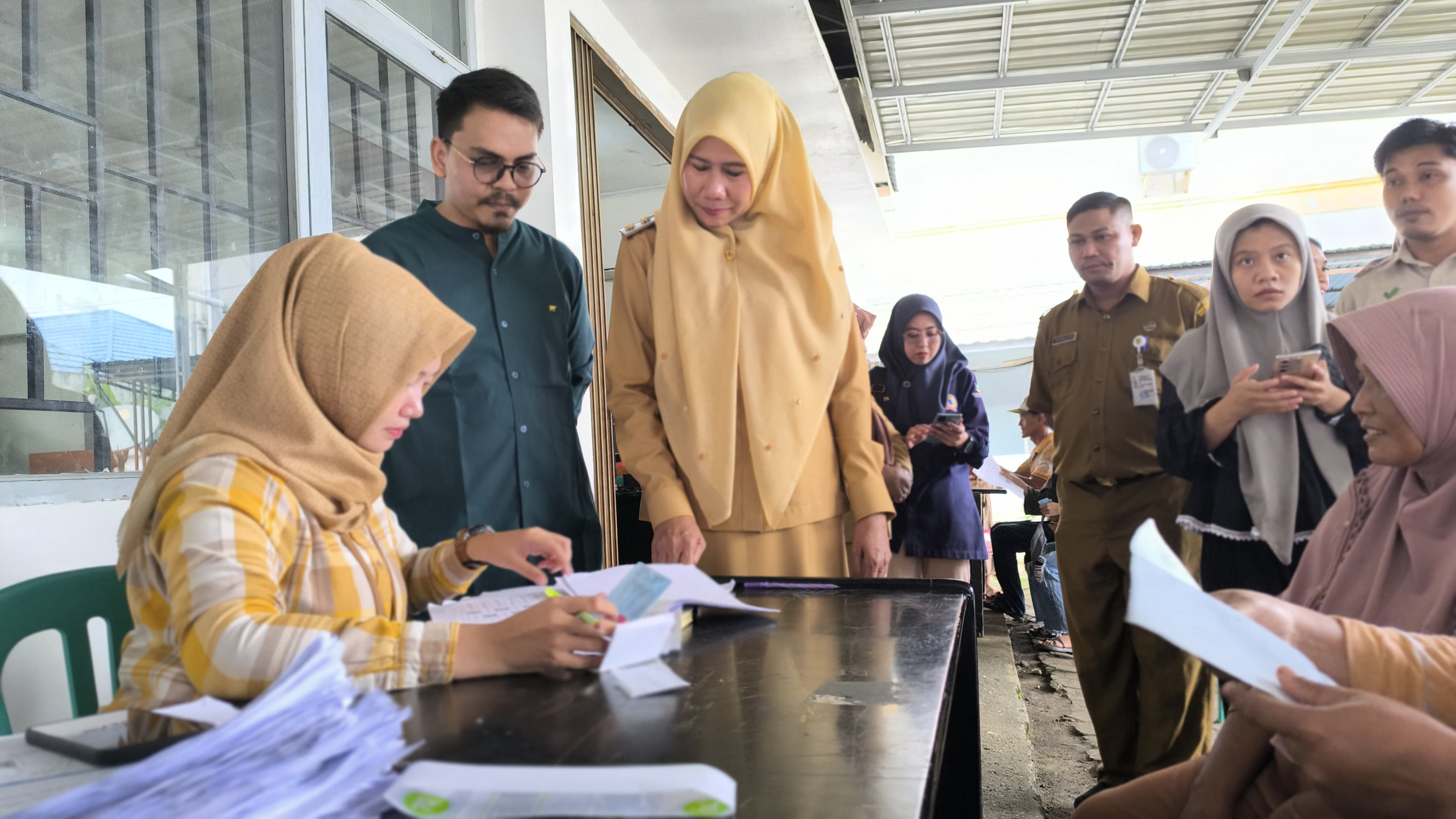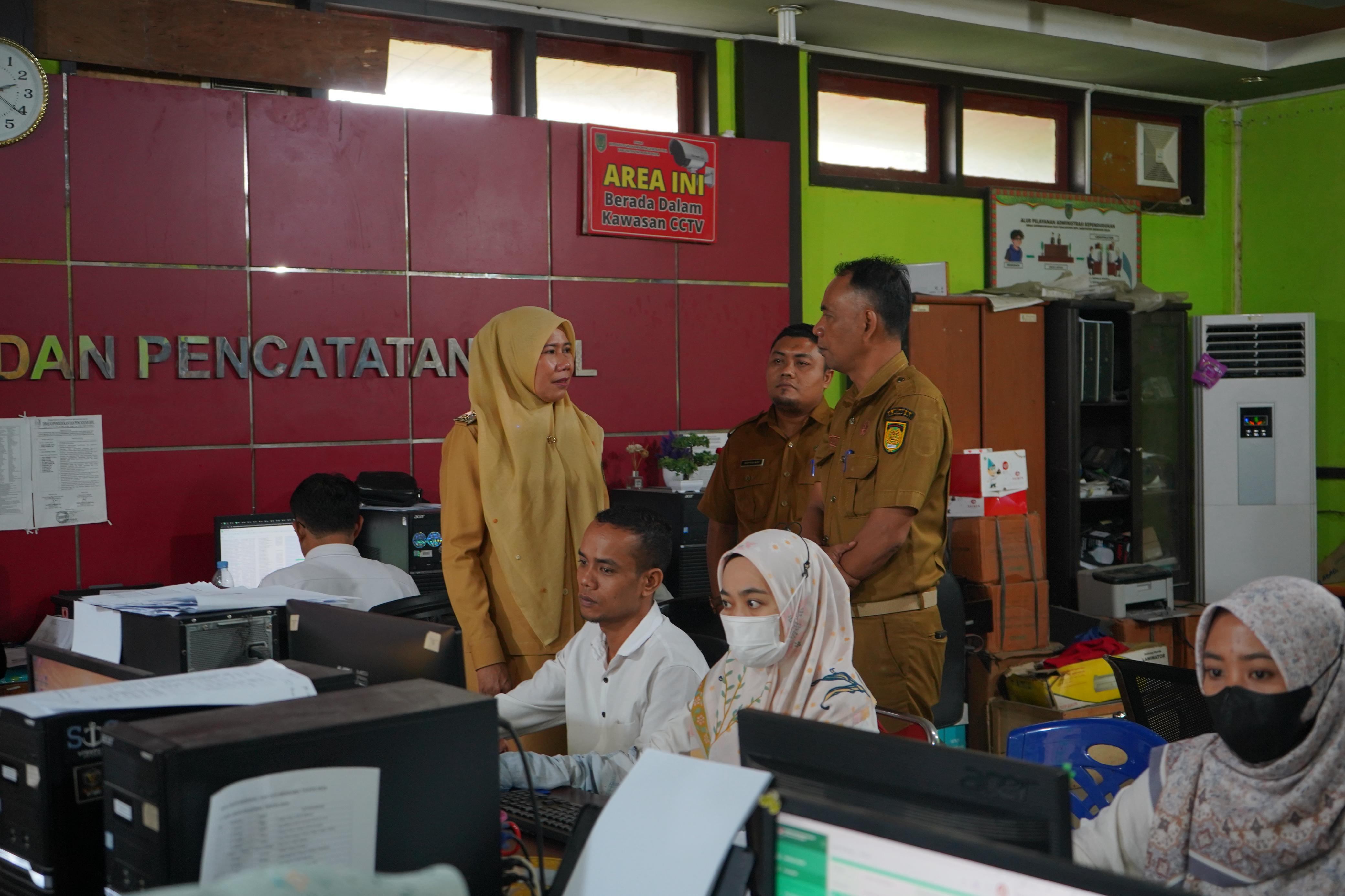 Setelah meninjau operasi pasar murah, Wakil Bupati melanjutkan kunjungan ke Kantor Dinas Kependudukan dan Pencatatan Sipil (Disdukcapil) Inhil untuk melihat langsung proses pelayanan administrasi kependudukan bagi masyarakat. Ia menekankan pentingnya kemudahan akses layanan kependudukan, terutama bagi warga desa.
