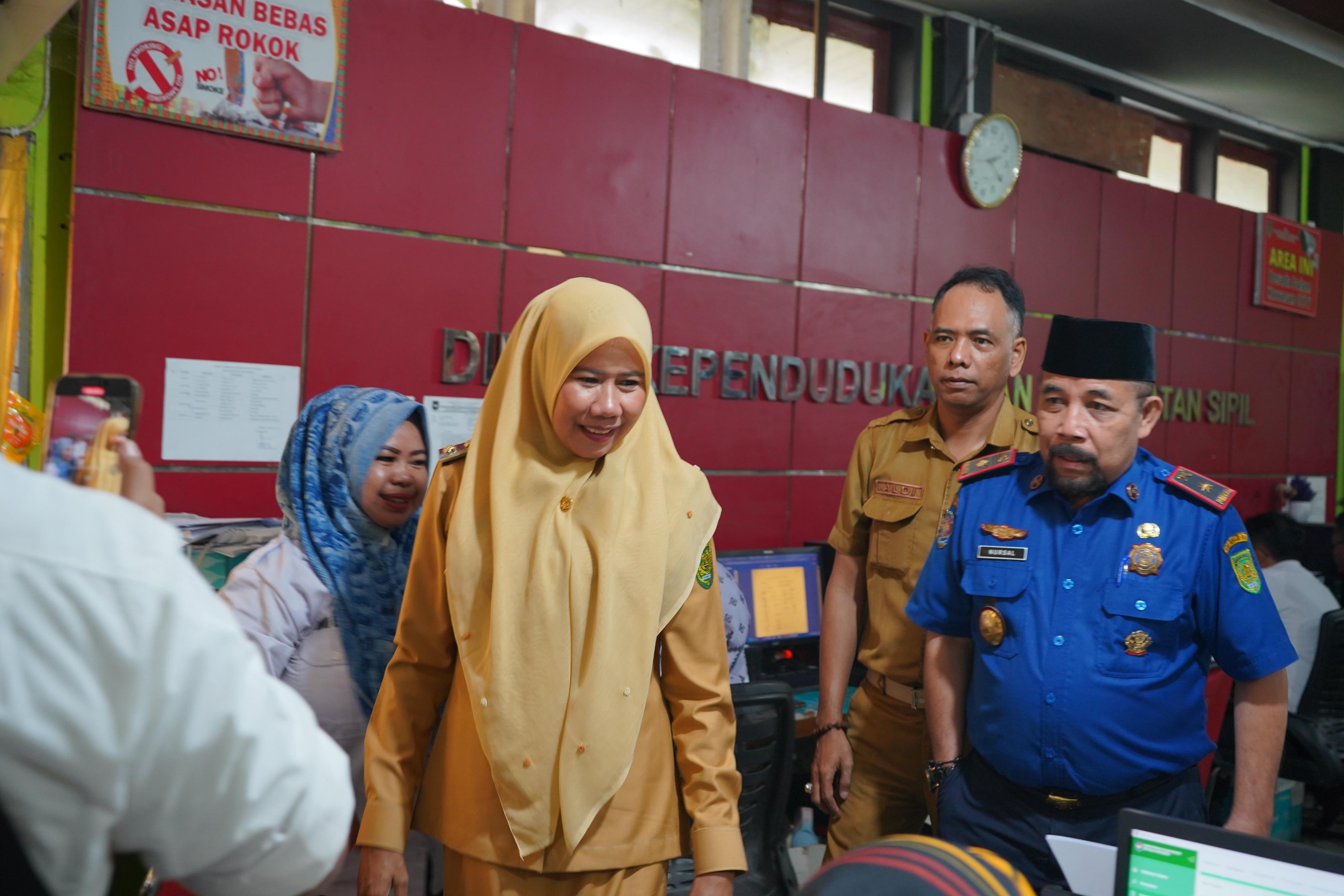 Wabup Inhil Kunjungi dan Tinjau Pelayanan di Disdukcapil Inhil