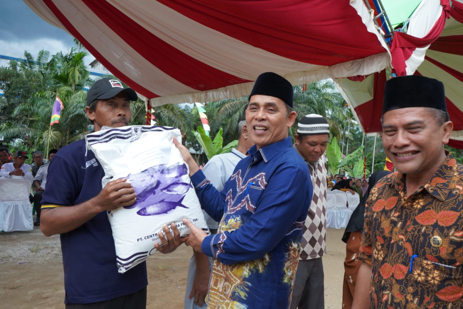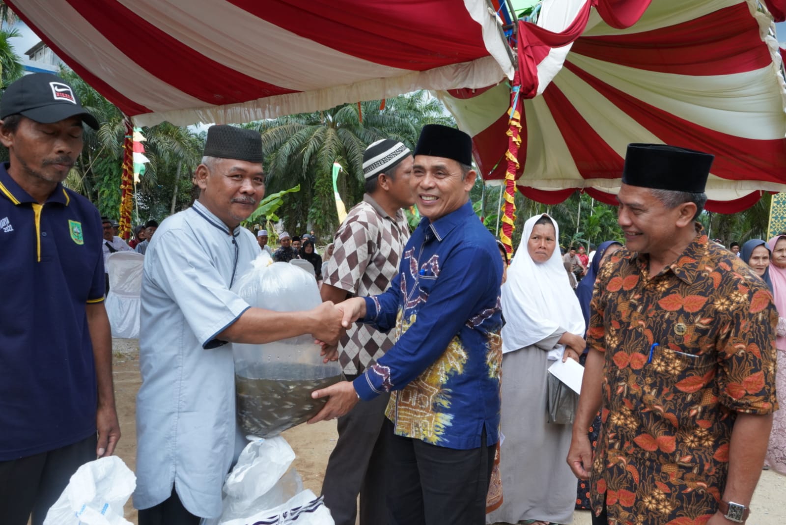 Bupati Inhil menyerahkan bantuan bibit ikan kepada masyarakat