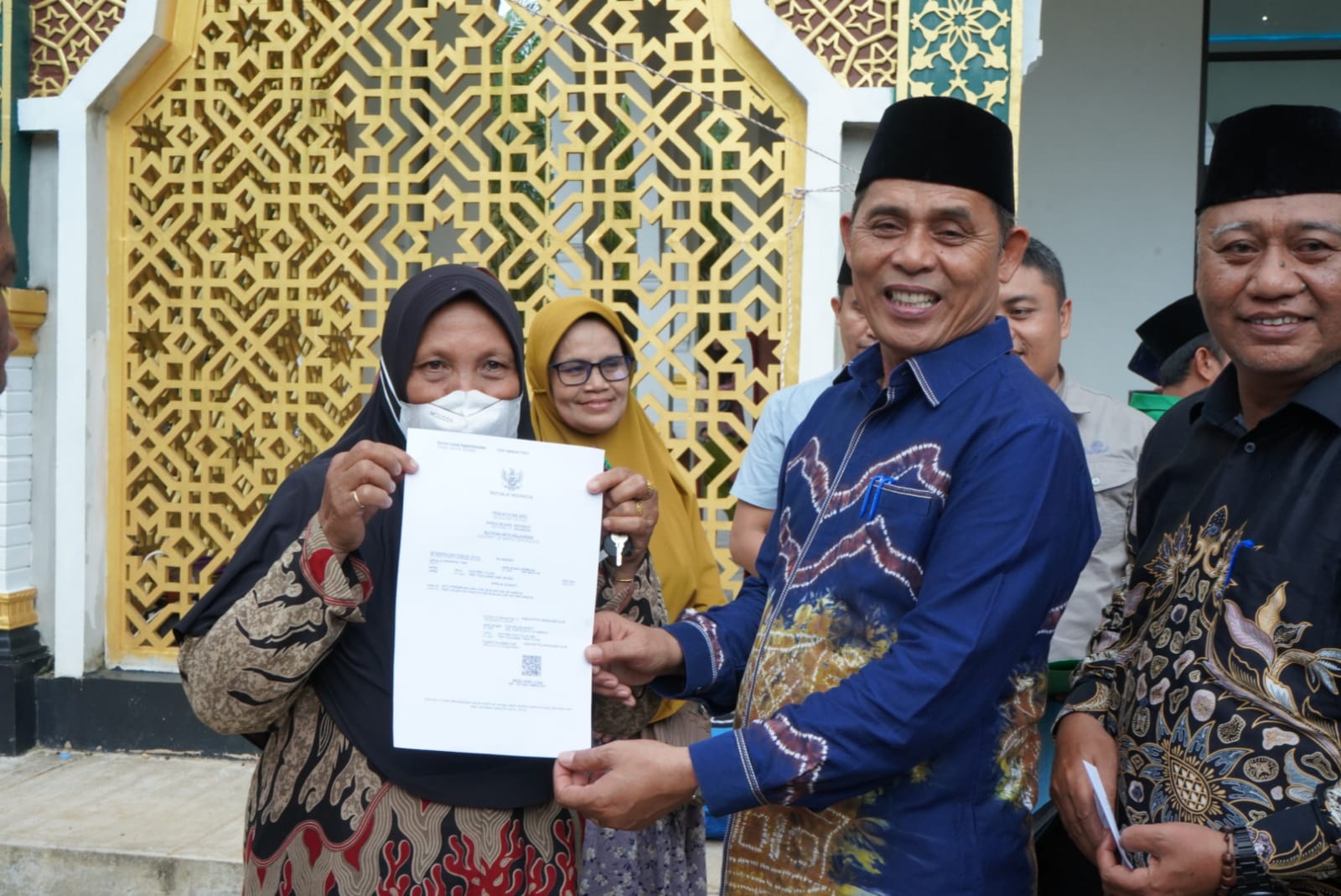 Bupati Inhil, H. Herman menyerahkan dokumen akta kelahiran kepada warga Kempas