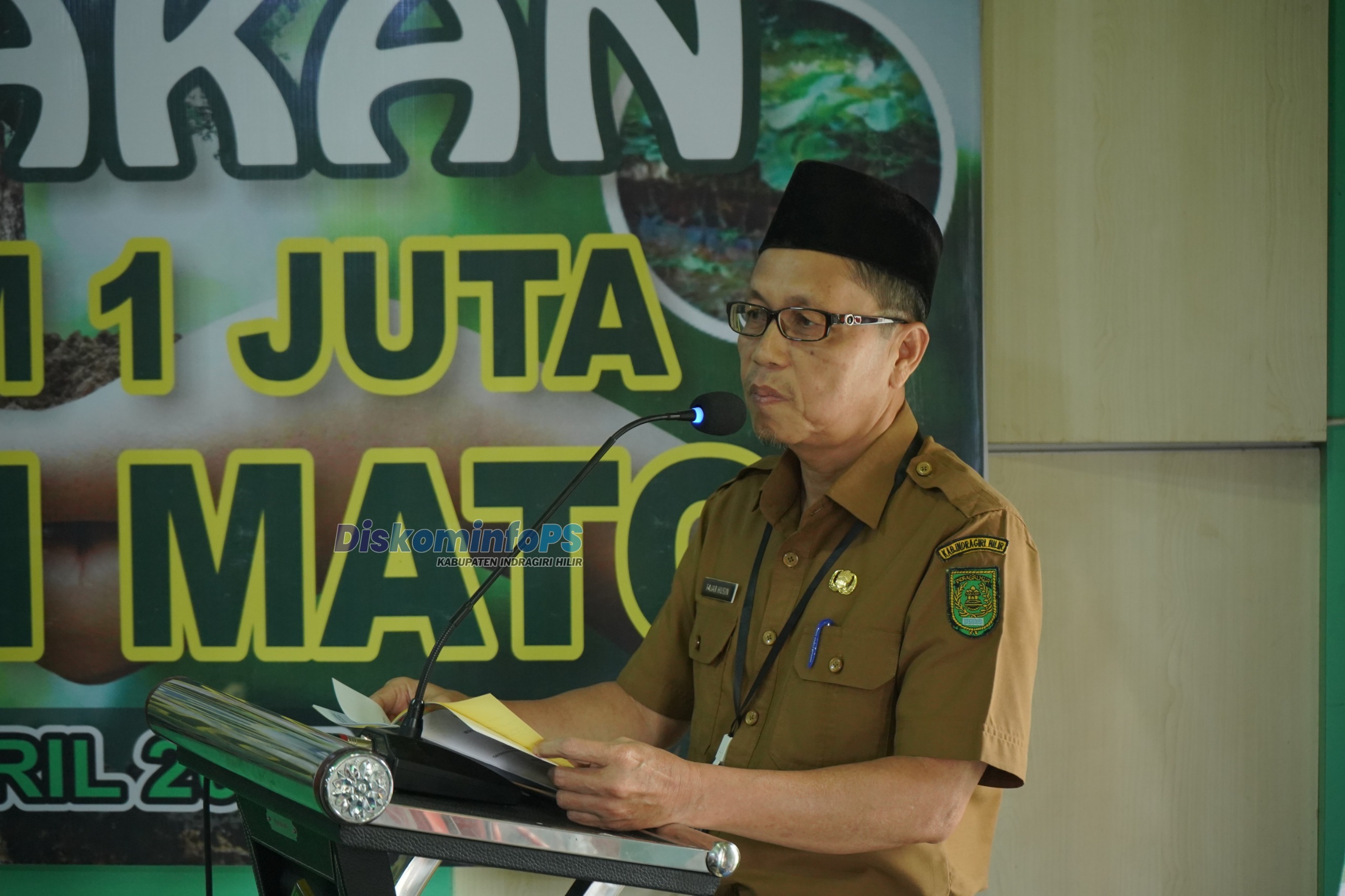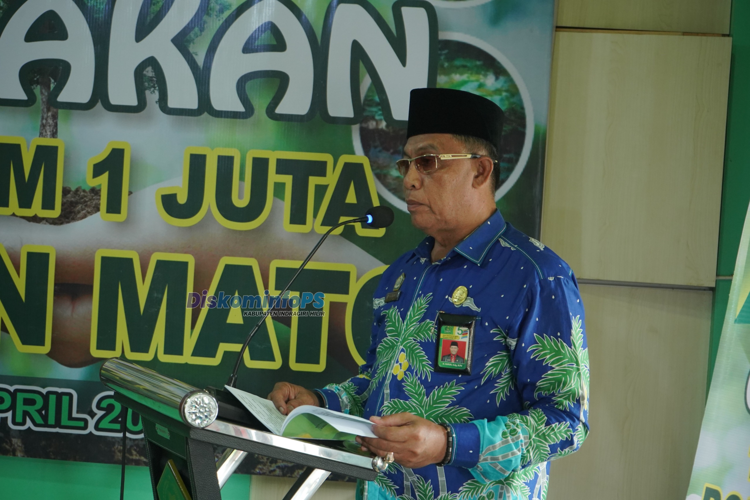 Kepala Kemenag Inhil, H. Harun saat memberikan sambutan dalam kegiatan peluncuran program Gerakan Penanaman 1 Juta Pohon Matoa.