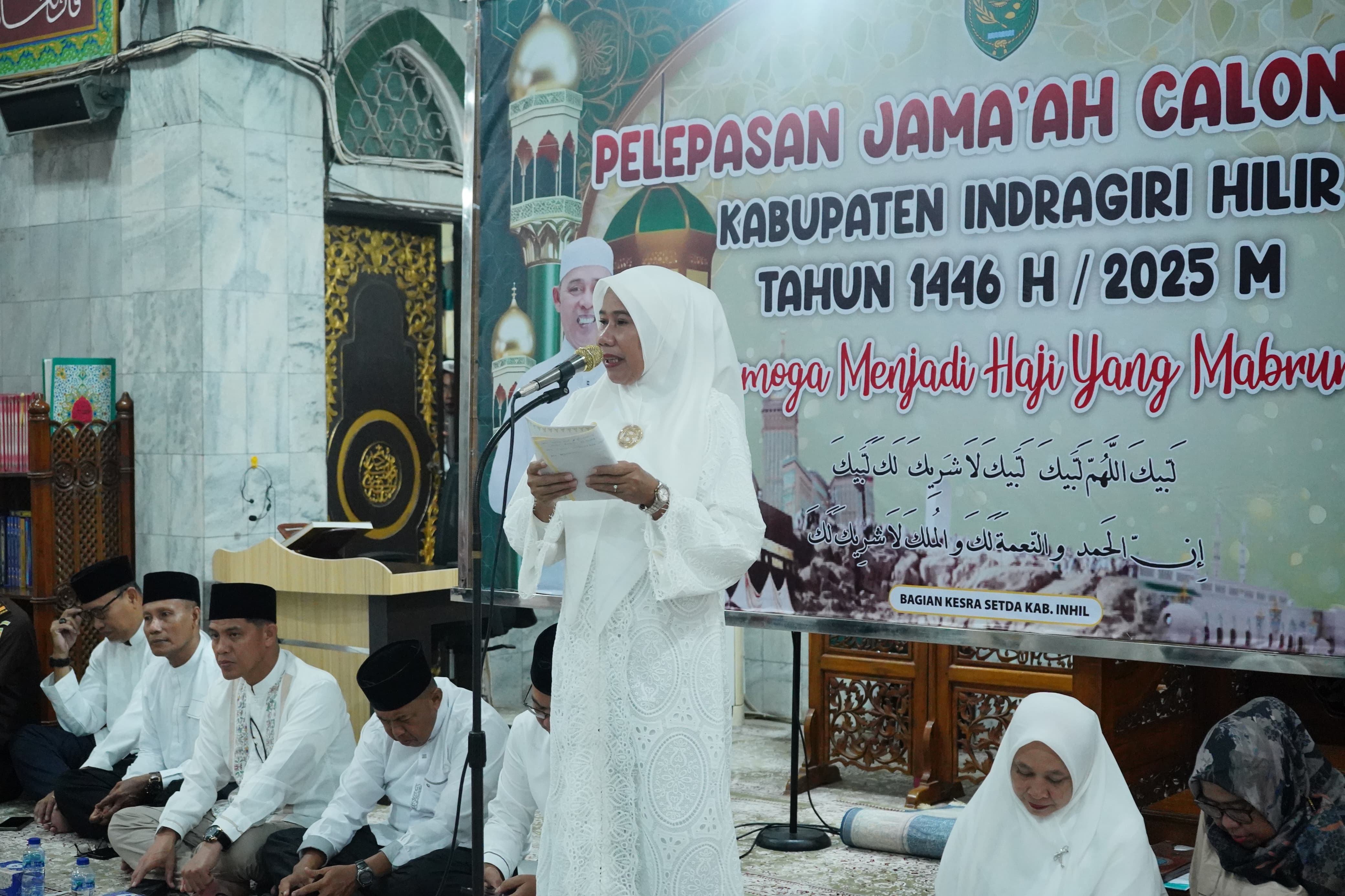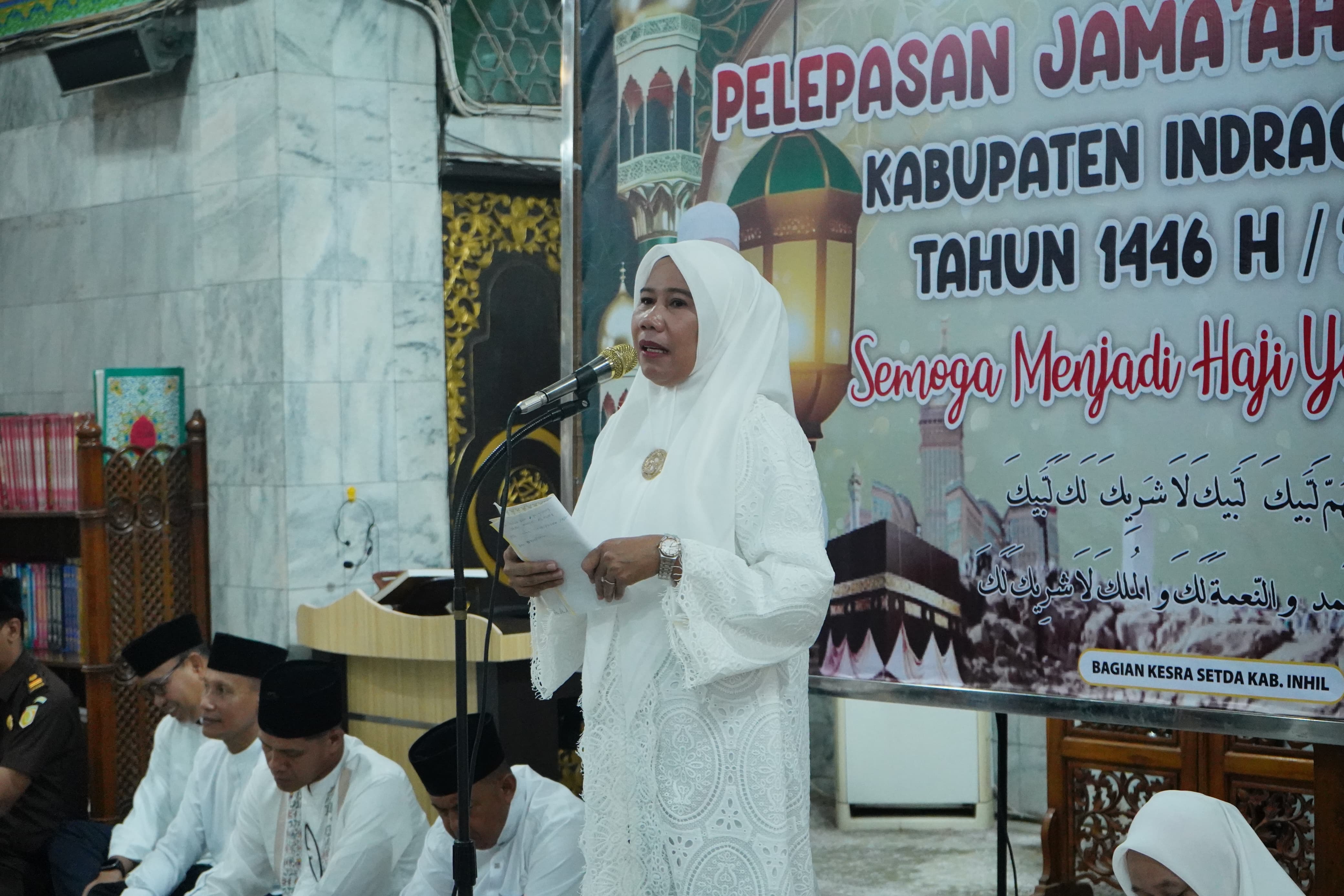Wakil Bupati Inhil, Yuliantini melepas keberangkatan Calon Jamaah Haji Kabupaten Inhil musim haji tahun 1446/2025.