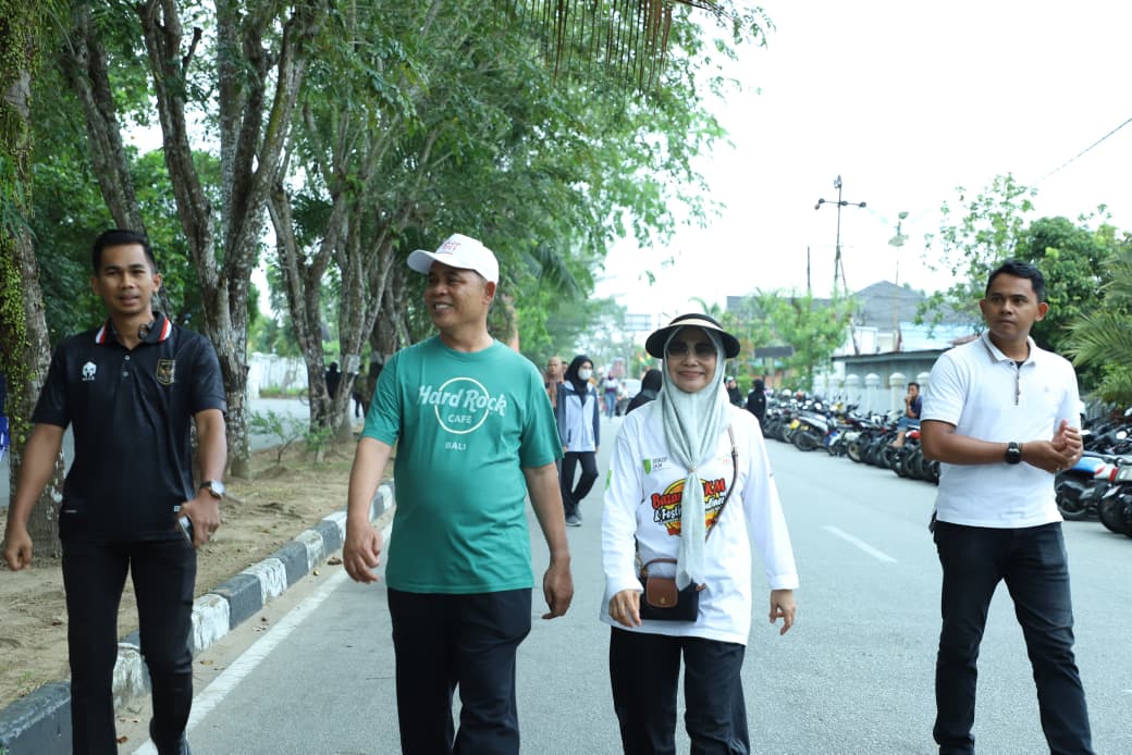 SIBERONE.COM - Menikmati pagi Minggu dengan olahraga, Bupati Indragiri Hilir (Inhil) Herman, bersama Ketua Tim Penggerak PKK Katerina Susanti Herman, mendatangi kawasan Car Free Day (CFD) Jalan Swarna Bumi Tembilahan, Minggu (3/8).
