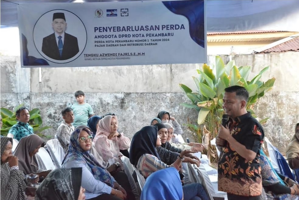 SIBERONE.COM - Penjelasan Perda Nomor 1 Tahun 2024 tentang Pajak dan Retribusi Daerah menjadi agenda Wakil Ketua DPRD Pekanbaru Tengku Azwendi Fajri saat hadir di tengah masyarakat Jalan Kapling Amilin, Kelurahan Tangkerang Utara, Kecamatan Bukit Raya pada Kamis (27/11).